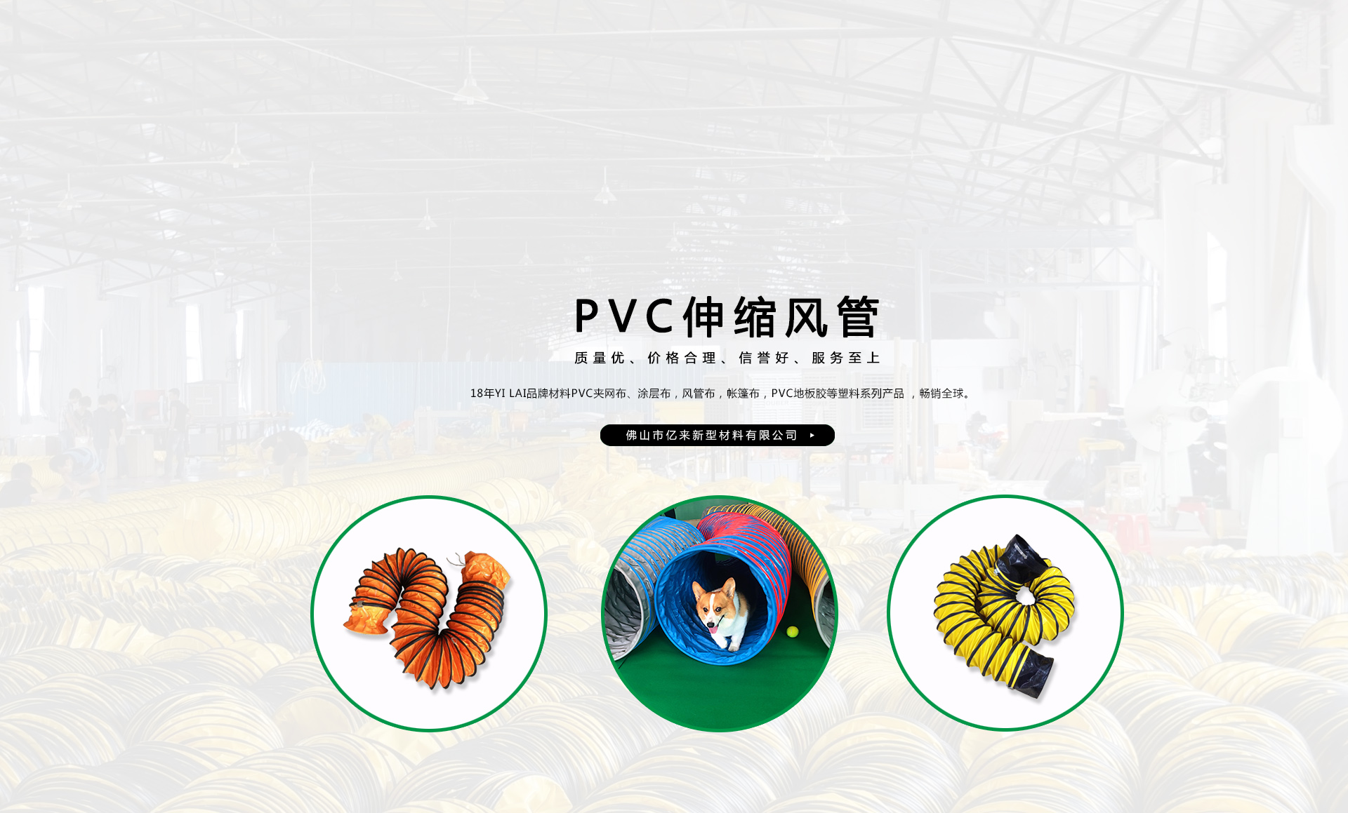 创建“YILAI品牌”近20年来,产品质量稳定提高,生产及经营的产品包括PVC夹网布、PVC彩条布、PVC风管布、PVC涂层布、PVC篱笆围护栏布、PVC透明夹网布、PVC伸缩风管、车缝风管、宠物管、耐高温风管、地下室通风管,保温通风管、空调排风管、正负压通风管、三通/四通排风管、防静电风管、隧道风管、PVC地板胶等系列产品在市场上得到广大客户认可,畅销欧美、东南亚、非洲、中东等国外市场。