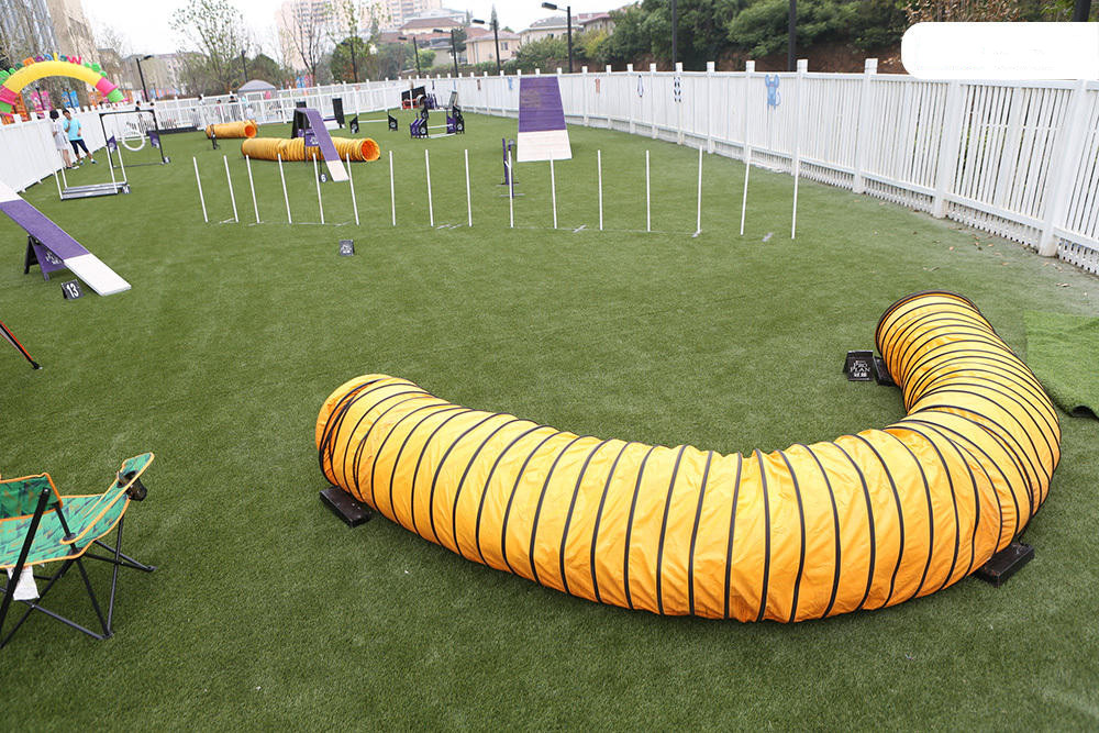 宠物隧道管主要由PVC材料,钢线和PVC胶条制作而成。PVC材料可以选用常规的PVC夹网布,防滑压纹的夹网布或者涂层布。可以配套沙包,固定在草场上 进行宠物竞技赛。