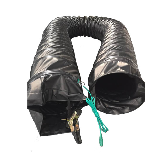 主要由三种材料组成,钢线, 阻燃的PVC夹网布, PVC胶条。 用PVC胶条包裹着的钢线作为风管的骨架,风管的管身是PVC夹网布,管身处每隔一米有一金属吊环,用于固定风管